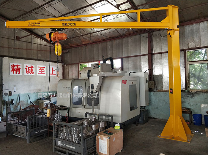 要設計方案的專用型起重機械。具備構造新奇、有效、簡易、實際操作方便使用、旋轉靈便、安全作業室內空間大等優勢,是環保節能高效率的原材料吊裝武器裝備。可普遍運用于廠礦、生產車間的生產流水線、裝配流水線和數控車床的上下左右鋼件及庫房、港口等場所的吊物吊裝。本機由立桿、旋轉懸臂及環鏈電動葫蘆等構成。立桿下方固定不動于混凝土基本上,懸臂旋轉,可依據客戶要求開展旋轉。